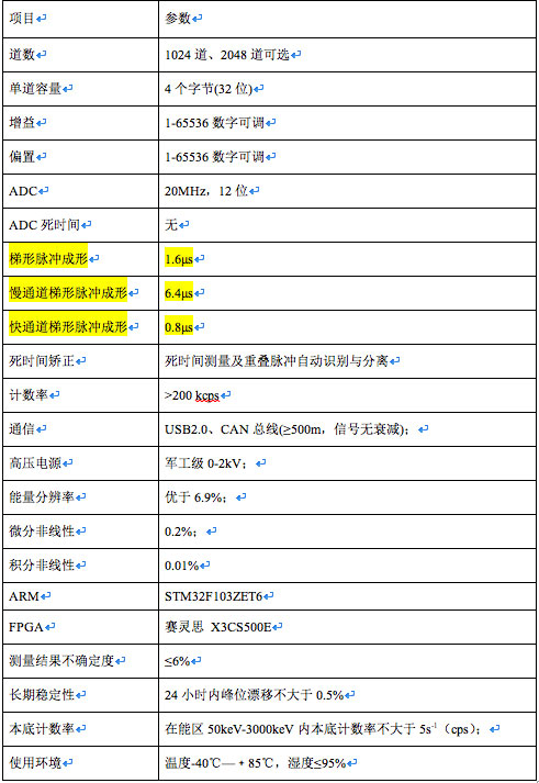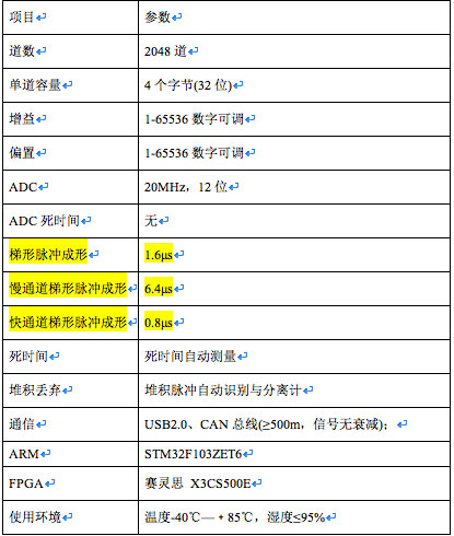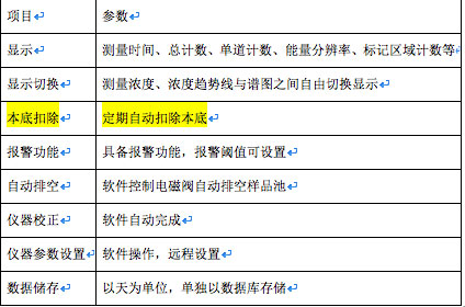 钚在线系统仪器性能参数